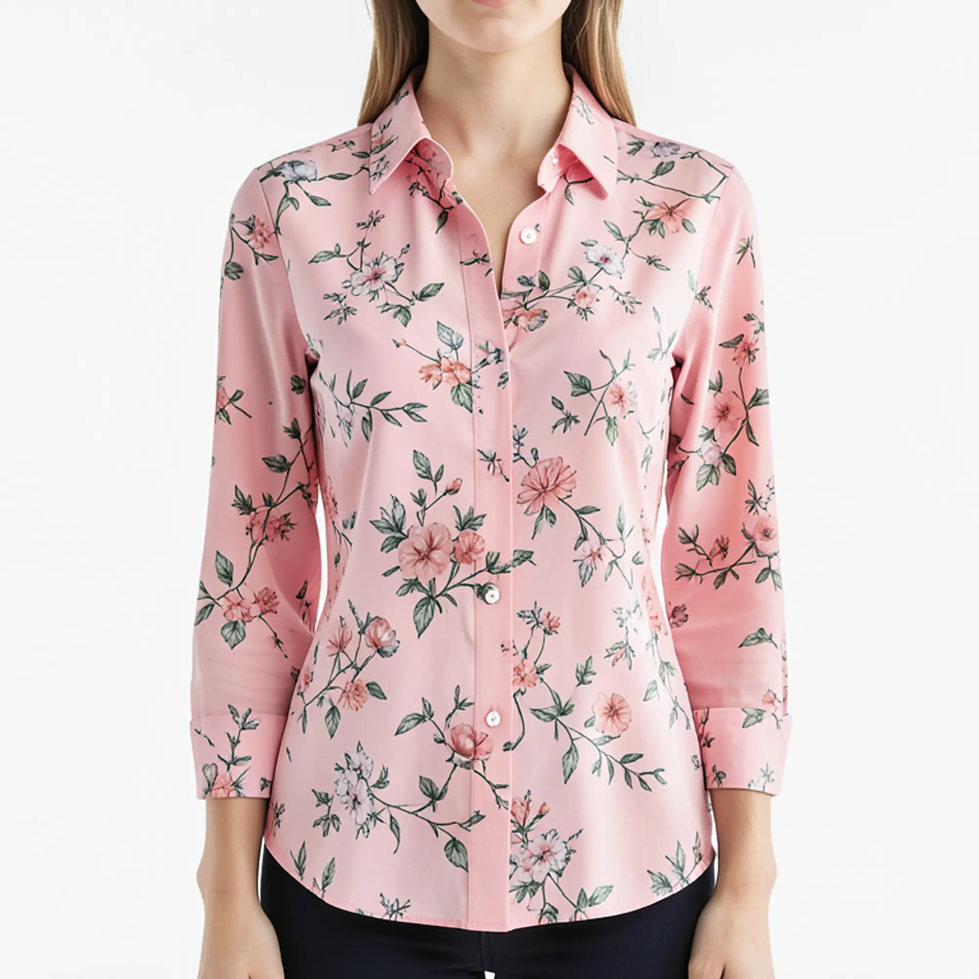 This effortlessly chic floral shirt features a delicate bloom pattern that adds a romantic touch to any outfit, with a relaxed silhouette that flatters every figure. The lightweight fabric drapes beautifully, while the classic collar and button-front design make it versatile enough to transition from office hours to weekend brunches. Available in soft pink and neutral beige, this timeless piece pairs perfectly with tailored trousers for a polished look or your favorite denim for a casual-elegant ensemble.