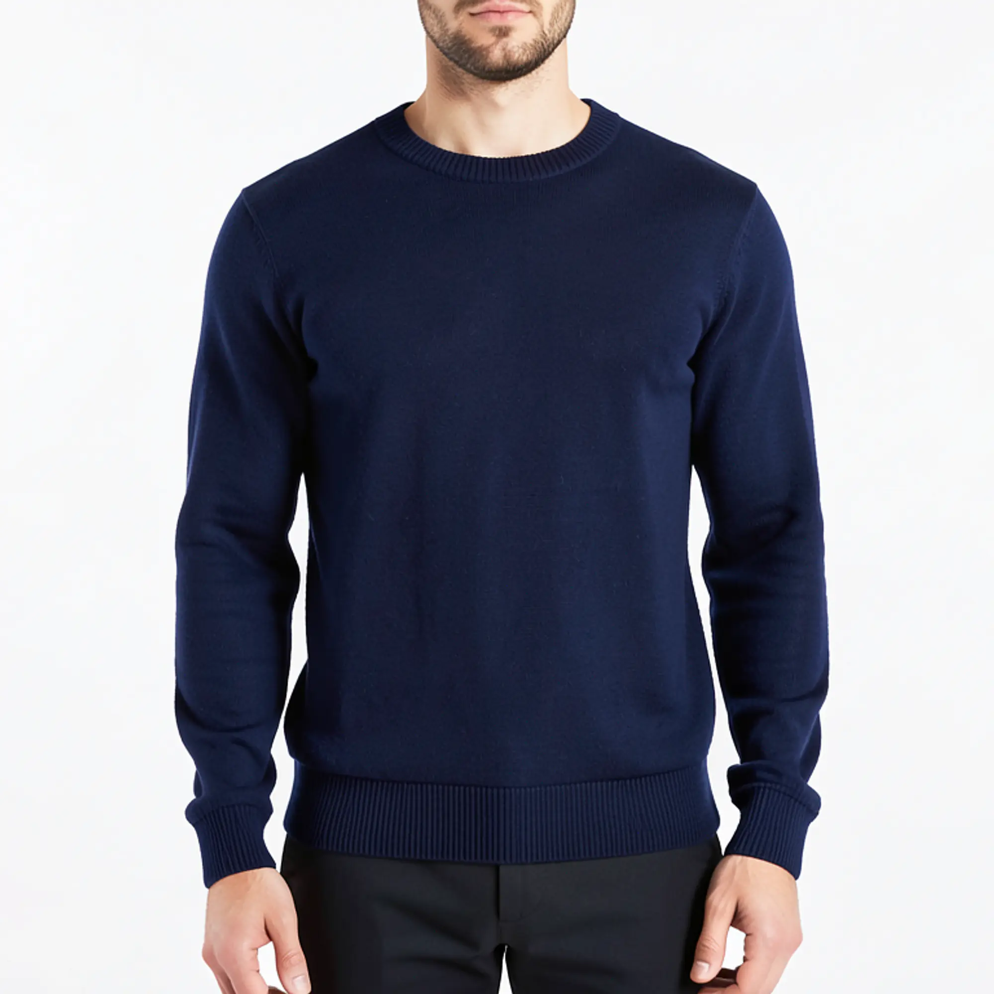 This refined long sleeve jumper combines timeless design with modern comfort, featuring a classic crew neckline and clean-lined silhouette that effortlessly transitions from workweek to weekend. The versatile piece is crafted from a premium cotton blend that maintains its shape throughout the day, while the sophisticated dark blue and beige color options ensure seamless integration into any contemporary wardrobe.